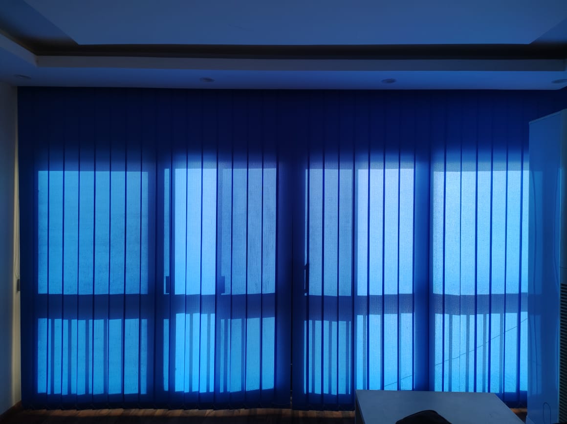 تعد ستائر مكتبية عمودية من أكثر أنواع الستائر استخدامًا، فهى تتكون من شرائح طويلة من القماش وتتميز بجودتها العالية وتعدد ألوانها مما يجعلها تتناسب مع العديد من ديكورات المكتب.